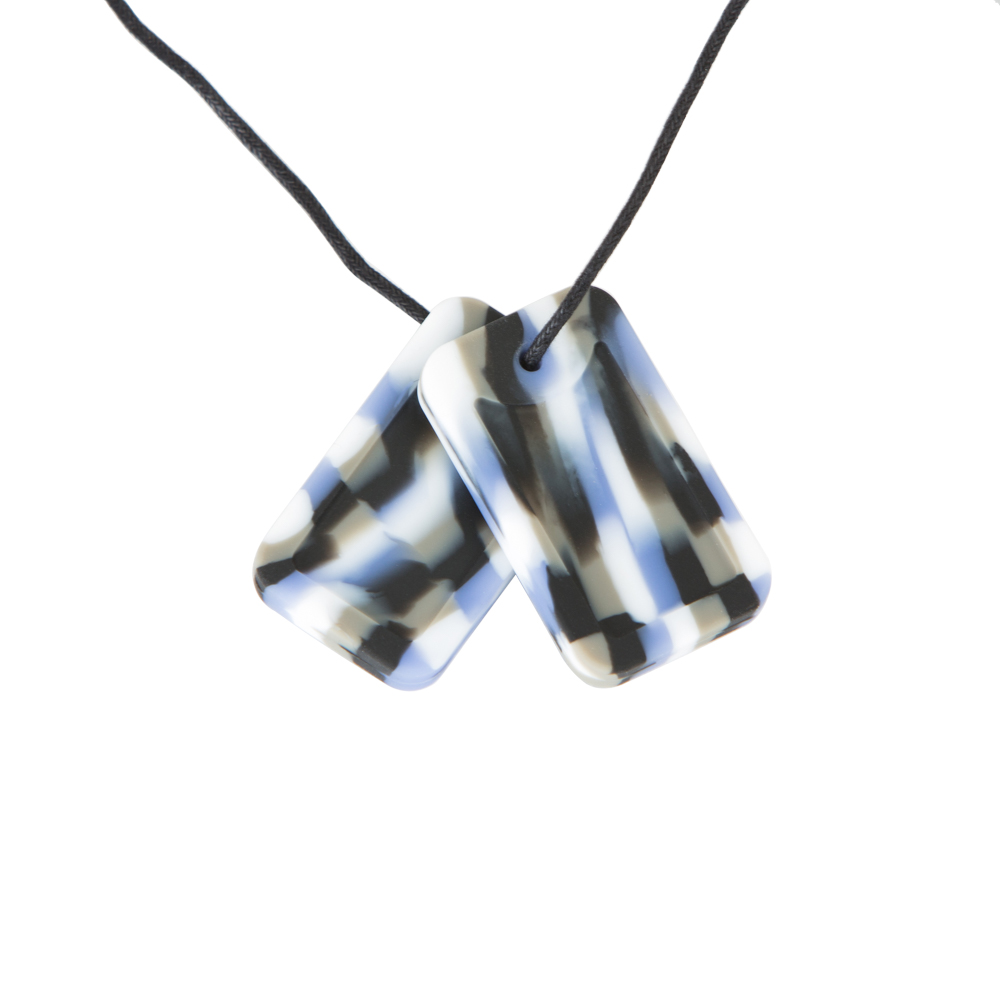 The DOG TAG chewing jewelry from Chewigem consists of 2 pendants in the form of an ID plate. They are delivered together on a cord. You can choose to remove 1 picture so that you have a spare. A cool chewigem chewing jewelry for both boys and girls with light chewing needs! (So 2 ID plates are delivered on a chain). TIP: Buy an extra cord so you have 2 bite chains: 1 for home and 1 for school! Note: Some websites also sell ‘dog tags or ID tags’, but at a cheaper price, which are NOT from the Chewigem brand and may be less secure.