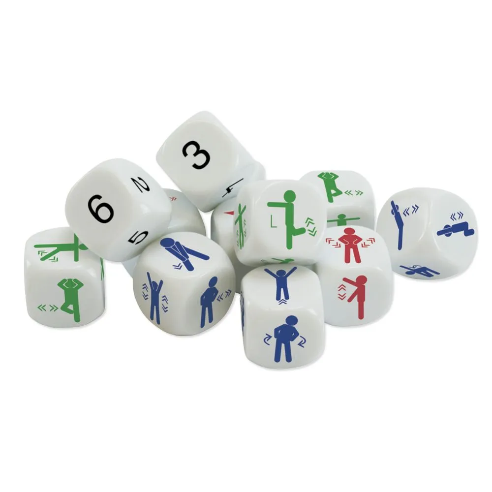 - Contents:each 3 dice with exercises for the arms, legs and body and 3 number dice with the numbers 1-6