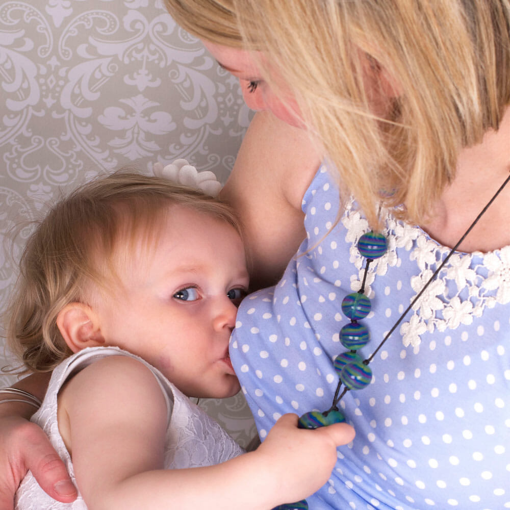 Mother’s jewelry is safe for your little one to fidget with and munch on. They provide relief from teeth coming through.