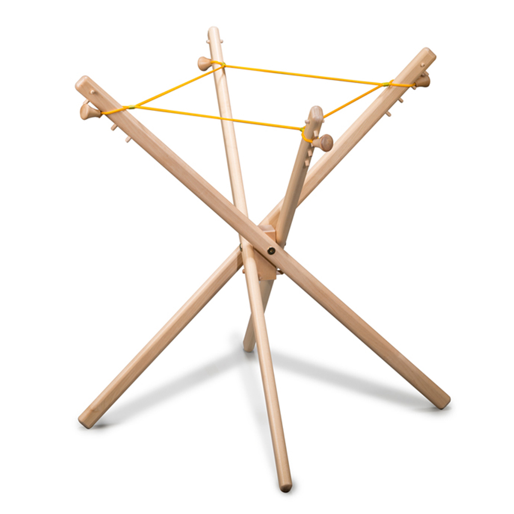 The standard is by adjusting the all-round rope in 4 heights, convenient to adjust for larger and smaller children. Don’t use the stand for a while? Then this is easy to fold in to store.