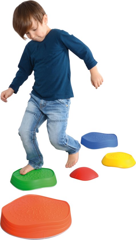 - Inspired by ‘jumping over the stones by the river’, this product from Weplay offers fun movement activities. The colourful and simple ‘stones’ allow for different route patterns. Each stone size has different types of slopes. You can also stack the ‘bricks’ to create different challenges for users with different needs. The various patterns and textures on the stone surface bring different senses of touch. Non-slip surface and bottom provide the best stability and safety. After use, you can easily store the River Stones in the included backpack.