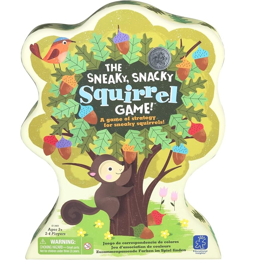 Winter is coming and the squirrels are hungry. Help them look for food by filling your trunk with tasty acorns before another sneaky squirrel steals one from you! The Sneaky Snacky Squirrel game is the fun strategy game for the whole family that develops tactical thinking, hand-eye coordination, fine motor skills and pre-handwriting skills while using the Squirrel.