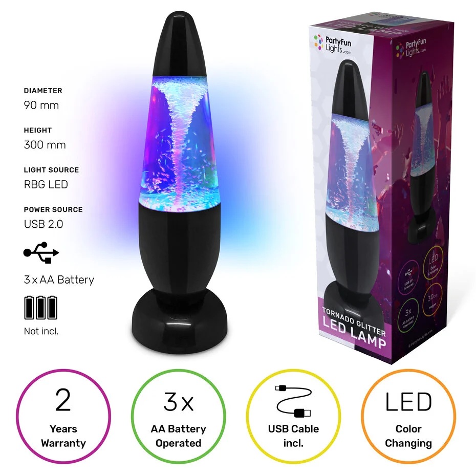 - Inhoud: Tornado Glitterlamp + USB-kabel